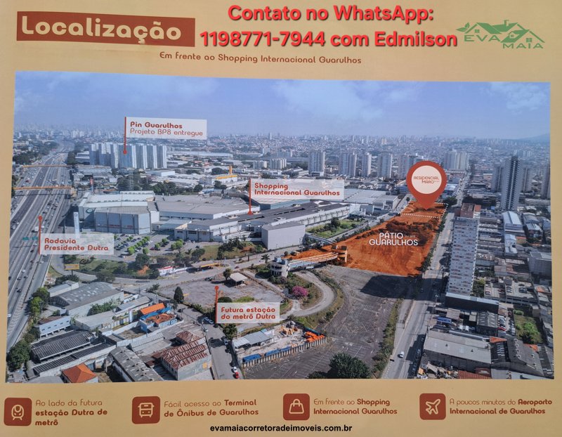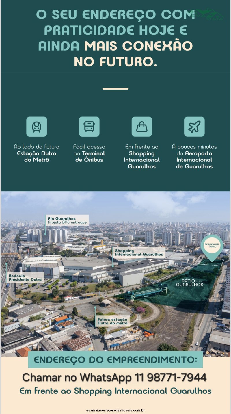 *Apto ainda na PLANTA com 27m² quadrados, localizado em frente ao Internacional Shopping e ao lado da futura Estação Dutra do metrô e próximo ao centro de Guarulhos, venha conhecer, anida da tempo de aproveitar as condições especiais de desconto com valor a partir de R$ 238.000,00 com a entrada de no mínimo 20% avista ou parcelada direto com a construtora até a entrega da chave.